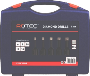 <ul><li>Diamantdroogboorset voor tegels en natuursteen op (accu)boormachine.</li><li>Set bestaande uit 4 diamantboren (ø 6 mm, ø 8 mm, ø 10 mm en ø 12 mm), centreerhulp en stofafzuiging.</li><li>Boren voorzien van zeskantopname voor optimale grip in de boorkop.</li><li>Voorzien van wax voor een goede smering.</li><li>Geleverd in aluminium koffer.</li></ul>