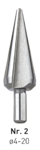 <b>Uitvoering:</b><br>CBN-geslepen plaatboor uit massief HSS. De teruggeslepen conus zorgt ervoor dat bij het doorboren van het materiaal, de boor zonder moeite kan worden teruggetrokken.<br><br><b>Toepassing:</b><br>Ideaal gereedschap voor: auto-, elektrotechnische- en vliegtuigindustrie, machinebouw, schakelkasten en loodgieters. Traploos centreren, voorboren en/of opboren zonder dat vervorming optreed van het werkstuk.