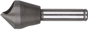 <b>Uitvoering:</b><br>HSS-E verzinkfrees met schuin gat 90°, cilindrische schacht.<br><br><b>Toepassing:</b><br>Voor het ontbramen en verzinken van kunststoffen en zachte metalen. Door de constructie van het gat kunnen de spanen niet langs de boor en het werkstuk komen. Het is van belang een laag toerental en een constante hoge voeding te gebruiken. Materiaalgroepen : 1.1 - 1.4 / 2.1 - 2.2 / 3.1 / 4.1 - 4.12 / 5.1 / 5.3