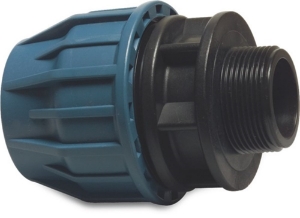 Jason Aansluitstuk PP 25 mm x 1/2" knel x buitendraad 16bar zwart/blauw DVGW/KIWA/WRAS