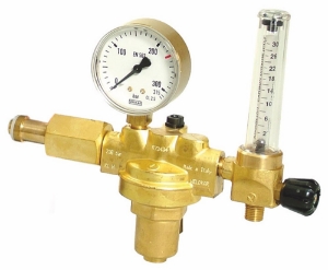 Drukregelaar met dubbele manometer met zijafsluiter.