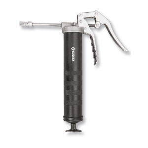 Het Groz vetpistool is een van de meest populaire vetpistolen voor éénhandig gebruik, ideaal voor moeilijk bereikbare plaatsen. Specifiek ontworpen voor gebruik in beperkte ruimtes waar toegang tot het smeernippel beperkt is, maakt dit vetpistool het werken gemakkelijker en efficiënter. Robuust gebouwd met een cilinder met een wanddikte van 0,049\" (1,2 mm), een heavy-duty veer voor de zuiger, een CNC-gefreesde kop met bulkvuller en luchtafvoerventiel met hoge tolerantie en een vinyl grip op het beweegbare handvat voor een betere grip. De supersterke pistoolgreep is ook ontworpen om knijpen te voorkomen en het comfort te vergroten tijdens langdurig gebruik. Het vetpistool ontwikkelt druk tot 5.000 PSI (345 Bar) met een output van 070 oz. / 40 slagen (0,50 gm / slag). Het vetpistool is ontworpen voor gebruik met een 14 oz. (400 gm) vetpatroon en 500cm3 bulkvet.