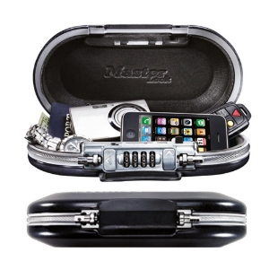 Masterlock draagbare kluis voor persoonlijke items. Zelfs inclusief uitsparing voor koptelefoon of oplader. Kluisje heeft een 4-cijferig combinatieslot welke zelf in te stellen is.