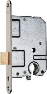 <b>Toepassing</b><ul><li>Geschikt voor renovatietoepassingen in afsluitbare binnendeuren in de woningbouw. Standaard slotkast met afgeronde voorplaat.</li></ul><br><b>Specificaties</b><ul><li>Voor links- en rechtsdraaiende deuren door eenvoudig omlegbare dagschoot</li><li>Messing dagschoot voor het soepel sluiten van de deur</li><li>17 mm europrofielcilinder</li><li>Messing nachtschoot</li><li>Rvs, staal gelakte, staal zwart gelakte of messing afgeronde voorplaat</li><li>Sommige uitvoeringen zijn leverbaar met extra zware contraveer, aangeduid met \"zware contraveer\" in de artikelomschrijving</li><li>Levering inclusief sluitplaat P 1266</li></ul>