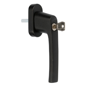 Veiligheids draai/kiep raamgreep 812 ovaal rozet met nokken.<br>Leverbaar met vierkant stift 7 mm.<br> <br>Kleur Zwart 9005 Structuur.<br> <br>Montagehandleidingen beschikbaar op www.ami.nl downloads.
