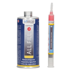 2-componenten renovatiecompound op basis van gemodificeerde polyesterharsen en zeer fijne en gesloten vulstoffen. Handige kleine Verpakking. Ideaal voor de kleine reparaties. Speciaal ontwikkeld voor het binnen en buiten repareren van gaten en beschadigingen in houten ondergronden (deuren, ramen en kozijnen). Met het speciaal voor de all fill geschikte dosseerapparaat wordt altijd de juiste mengverhouding gedoseerd. Hierdoor kan een constante kwaliteit en verwerkbaarheid worden verkregen.Verkrijgbaar in beige en wit.