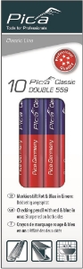 Dubbele potloden van Pica, rood / blauw.<br><br> BIJZONDERE KENMERKEN<br> Dubbel potlood.<br> Kleur: Rood & Blauw.<br> Zeshoekige vorm.<br> Vullingen van hoge kwaliteit met een grote diameter.<br> Scherpe punten aan beide kanten.<br> Makkelijk te slijpen.<br> Aan te bevelen met de koker van Pica, voor optimaal werken met één hand.<br> 10 stuks in verpakking