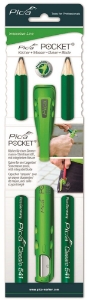 Pocket steenhouwerspotlood van Pica.<br><br> BIJZONDERE KENMERKEN<br> Twee steenhouwerspotloden en koker in 1 voor optimaal gebruik met één hand.<br> Kleur: Grafiet.<br> Robuuste koker: verbetering ten opzichte van alle soorten dikke, houten potloden.<br> De ingenieuze klemfunctie zorgt ervoor dat je altijd direct bij het potlood kan. Nooit meer nadenken waar je het potlood hebt gelaten en volledige concentratie op het werk.<br> Met geïntegreerde, zeer scherpe puntenslijper, gemaakt van staal.<br> Met veiligheidsstop bij het slijpen: geen kans om jezelf te bezeren.<br> Duurzame clip met extra versterking.<br> Afmeting potlood: 24 cm