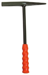 Lasbikhamer met massief stalen steel en rode kunststof handgreep. Hamer vervaardigd van gereedschapsstaal.