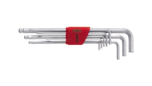 950/9 Hex-Plus 3 Stiftsleutelset, metrisch, verchroomd<br><br>Stiftsleutelset voor binnenzeskantschroeven<br>Hex-Plus zorgt ervoor dat binnenzeskant-schroeven langer meegaan<br>Hoge corrosiebescherming door verchroomd frame<br>Stiftsleutels zijn snel te vinden dankzij de formaatcodering<br>Slijtvast materiaal van clip voor langere levensduur<br><br><b>Artikelomschrijving</b><br>Hoogwaardige stiftsleutel-set met extra korte zijde om moeilijk bereikbare schroeven te kunnen bereiken. Voor binnenzeskant-schroeven. Onverslijtbaar clip-materiaal voor duurzaam veilige grip op de stiftsleutels; sleutels makkelijk uit clip te nemen. Het Hex-Plus-profiel is voorzien van grotere contactvlakken met de schroefkop. De kerfwerking en daarmee de deformatie van de schroef worden hierdoor gereduceerd. De kogel aan de lange zijde maakt veilig werken mogelijk, ook in lastige montageposities. De zorgvuldige verchroomde uitvoering garandeert een hoge bescherming tegen corrosie. Ingelaserde en dus wrijfvaste formaatmarkering op de stiftsleutels om snel de juiste sleutel te kunnen vinden.