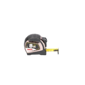 Lichtgewicht, verchroomde, stootvaste behuizing. <br>Met verwijderbare riem clip. <br>Onbreekbare eindhaak. <br>ingebouwde schokdemper vangt terugkerende band op. <br>Blokkering van de meetband op elke gewenste lengte.