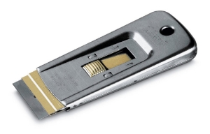 <ul><li>Metalen houder met uitschuifmechanisme.</li><li>Voor het verwijderen van verf, lijm, stickers, e.d. op glas</li><li>Met 5 reservemesjes</li><li>Reservemesjes 0-28-510 en 1-11-515 apart verkrijgbaar</li></ul>