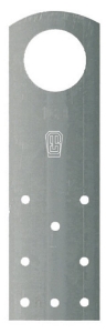 Metalen strip met een oog en schroefgaten, bedoeld als hijsvoorziening voor houten kozijnen, puien en elementen. Het hijsen dient plaats te vinden conform de richtlijnen van de SHR.