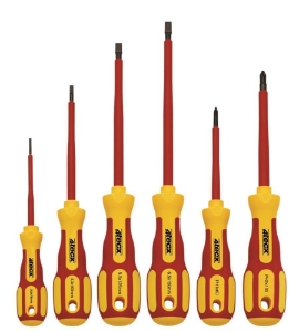 Classic VDE Slim schroevendraaierset voor gleufkop- en Phillips-schroeven. Volledig geïsoleerd tot 1000 V AC/1500 V DC volgens IEC/EN 60900. VDE gekeurd voor veilig werken. Met naar de punt toe gereduceerde klingdiameter, voor diepliggende schroeven.