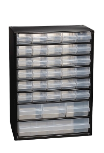 C9-34 stalen ladekast 34 laden, zwart. Gemaakt van polypropyleen.<br>Robuuste stalen ladekast geschikt voorwandbevestiging met 34 slagvaste laden. Laden type: 25x150-00, 3x150-02, 2x150-04.